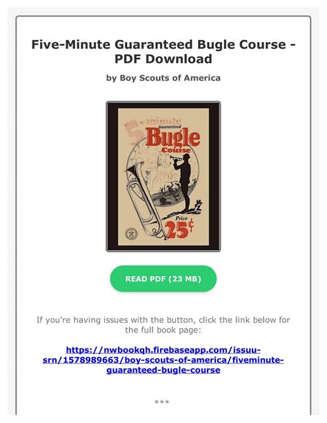 Download Five-Minute Guaranteed Bugle Course Reader online is a convenient and frugal way to read Five-Minute Guaranteed Bugle Course you love right from the comfort of your own home. Yes, there sites where you can get Reader "for free" but the ones listed below are clean from viruses and completely legal to use.